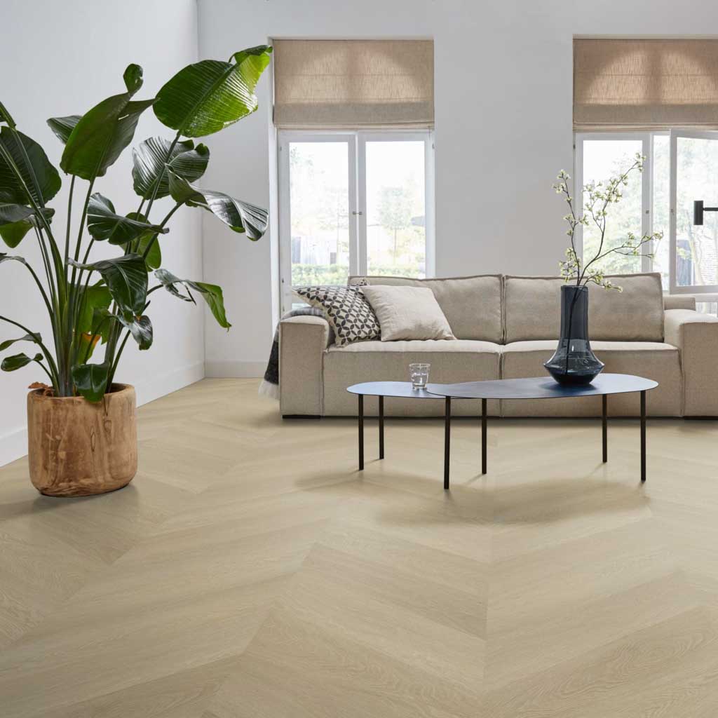 Ambiant Natural Oak is een moderne hongaarse punt pvc-vloer en heeft een rustige uitstraling. Met een totale dikte van 2,50 mm en een toplaagdikte van 0,55 mm is deze vloer geschikt voor elke ruimte. De Ambiant Natural Oak heeft een v groef aan 4 zijden van de plank en is te gebruiken in combinatie met vloerverwarming. De prijs in het offerte aanvraag systeem is de prijs inclusief leggen, 2-3 mm egaliseren en lijm. De vloeren worden door ons eigen stoffeerdersteam vakkundig gelegd. U heeft dus nergens omkijken naar. Vraag vrijblijvend een offerte aan of neem contact met ons op voor het bespreken van de mogelijkheden.