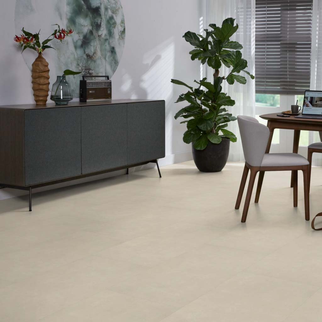 Ambiant Natural is een prachtige vtwonen pvc-vloer met een mooi egale beton look. Deze vtwonen pvc-vloer is een mooie basis in uw interieur en zorgt voor rust en ruimte in uw woning. 2,50 mm en een toplaagdikte van 0,55 mm is deze vloer geschikt voor elke ruimte. De Ambiant Natural heeft een v groef aan 4 zijden van de tegel en is te gebruiken in combinatie met vloerverwarming. De prijs in het offerte aanvraag systeem is de prijs inclusief leggen, 2-3 mm egaliseren en lijm. De vloeren worden door ons eigen stoffeerdersteam vakkundig gelegd. U heeft dus nergens omkijken naar. Vraag vrijblijvend een offerte aan of neem contact met ons op voor het bespreken van de mogelijkheden.