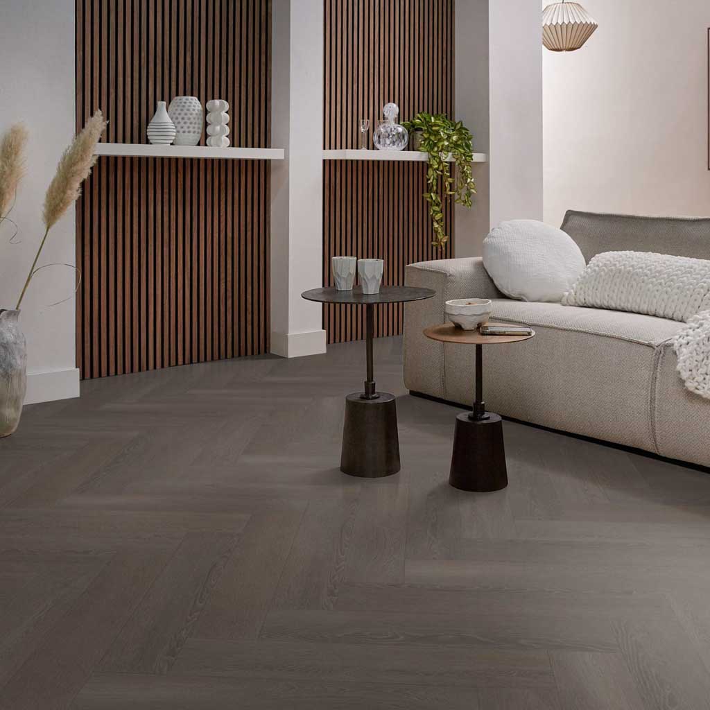 Ambiant Charcoal is een prachtige visgraat pvc-vloer met een levendig design. Deze vtwonen visgraat pvc-vloer heeft een mooi klassiek karakter en zorgt voor een prachtig interieur. 2,50 mm en een toplaagdikte van 0,55 mm is deze vloer geschikt voor elke ruimte. De Ambiant Charcoal heeft een v groef aan 4 zijden van de tegel en is te gebruiken in combinatie met vloerverwarming. De prijs in het offerte aanvraag systeem is de prijs inclusief leggen, 2-3 mm egaliseren en lijm. De vloeren worden door ons eigen stoffeerdersteam vakkundig gelegd. U heeft dus nergens omkijken naar. Vraag vrijblijvend een offerte aan of neem contact met ons op voor het bespreken van de mogelijkheden.
