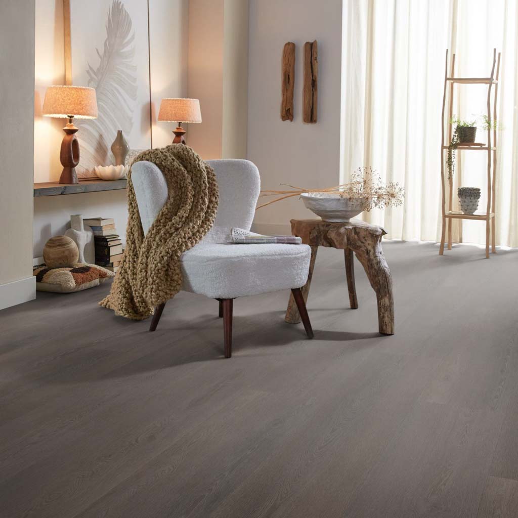 Ambiant Charcoal is een prachtige vtwonen pvc-vloer met een extra brede en lange plank. Dit gecombineerd met een rustig dessin zorgen ervoor dat zelfs de kleinere ruimtes alsnog ruim ogen. 2,50 mm en een toplaagdikte van 0,55 mm is deze vloer geschikt voor elke ruimte. De Ambiant Charcoal heeft een v groef aan 4 zijden van de tegel en is te gebruiken in combinatie met vloerverwarming. De prijs in het offerte aanvraag systeem is de prijs inclusief leggen, 2-3 mm egaliseren en lijm. De vloeren worden door ons eigen stoffeerdersteam vakkundig gelegd. U heeft dus nergens omkijken naar. Vraag vrijblijvend een offerte aan of neem contact met ons op voor het bespreken van de mogelijkheden.