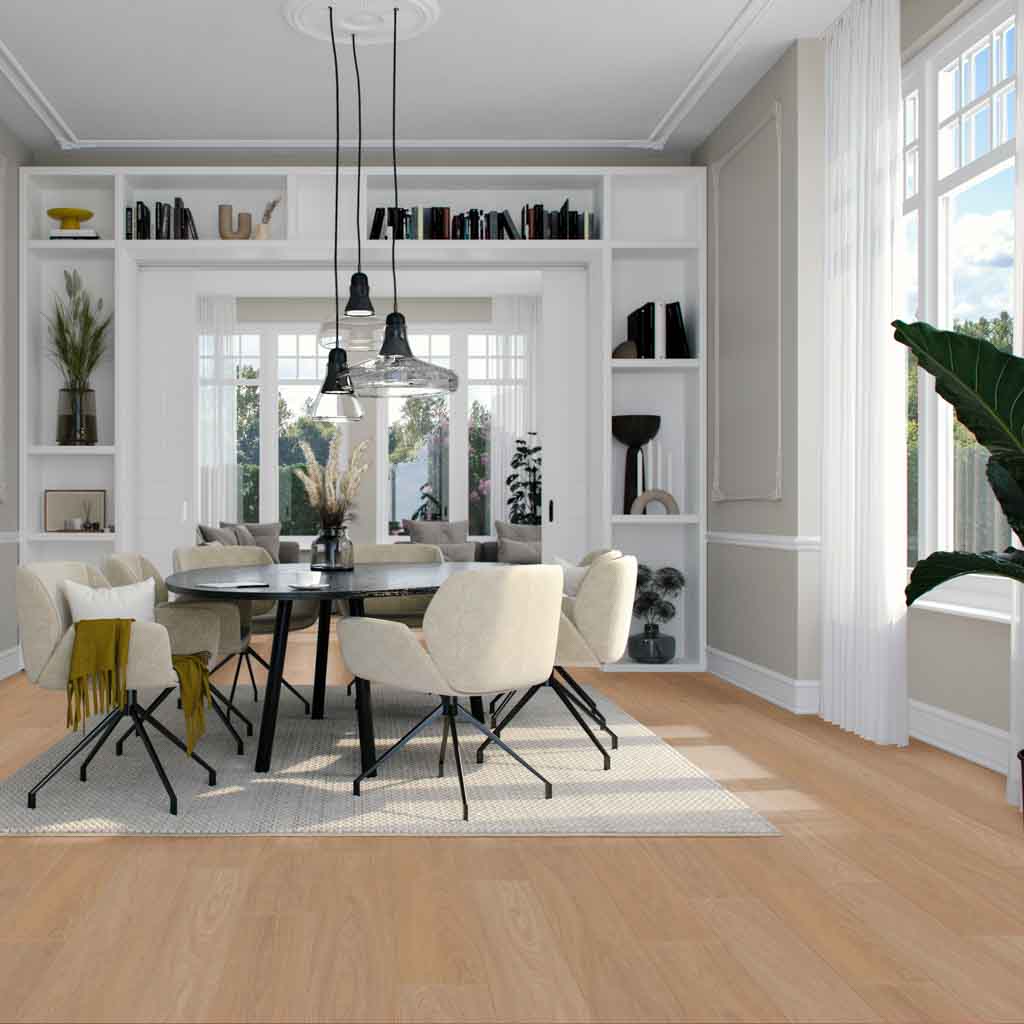 De Vivafloors 7870 is mooie en stoere pvc-vloer. Wanneer u het niet weet is het net een houten vloer. Met een totale dikte van 2,50 mm en een toplaagdikte van 0,55 mm is de kwaliteit gegarandeerd. De Vivafloors 7870 heeft een matte uitstraling en micro groeven aan 4 zijden van de plank. Tevens kan de vloer op vloerverwarming en koeling. De prijs in het offerte aanvraag systeem is de prijs inclusief leggen, 2-3 mm egaliseren en lijm. De vloeren worden door ons eigen stoffeerdersteam vakkundig gelegd. U heeft dus nergens omkijken naar. Vraag vrijblijvend een offerte aan of neem contact met ons op voor het bespreken van de mogelijkheden.