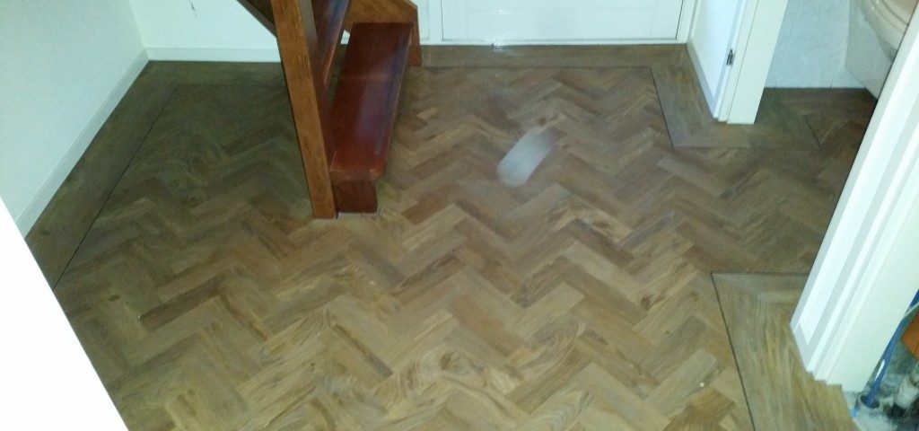De Mflor parva is met zijn kleine plankjes ideaal voor een visgraat vloer. Deze vloer hebben we uigevoerd met een rand langs de kanten versterkt met zwarte bies. Super mooie vloer en klant weer zeer tevreden.