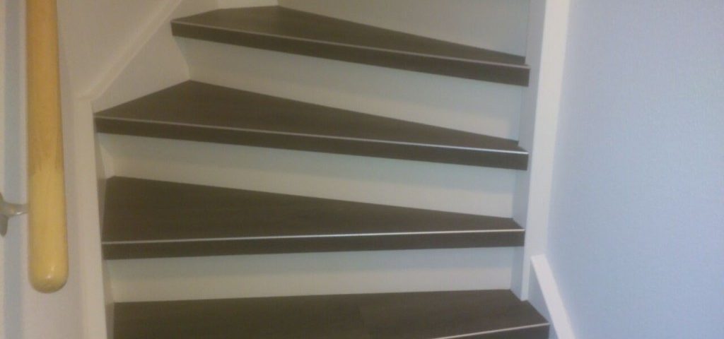 Deze trap is bekleed met plak pvc.